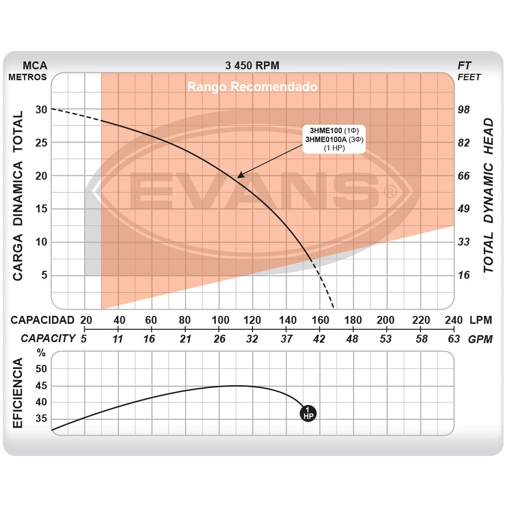 Punto de mayor eficiencia: 110 l/min a 19 m