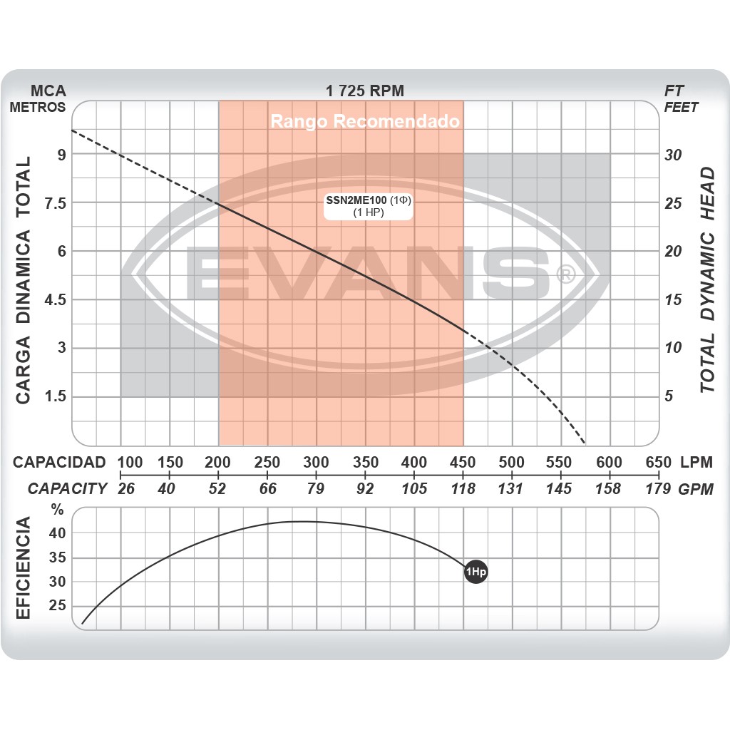 Punto de mayor eficiencia: 300 l/min a 3m