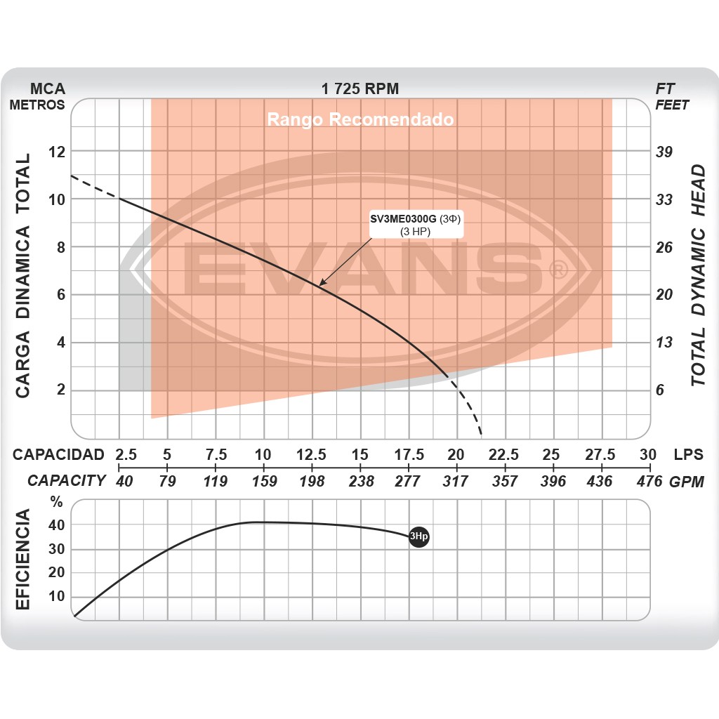 Bomba para solidos de max 2.25", trifásica 220V, 4 Polos, 8 m cable, impulsor de vórtice.