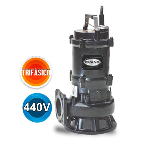 Bomba para solidos de max 2.25", trifásica 440V, 4 Polos, 8 m cable, impulsor de vórtice.