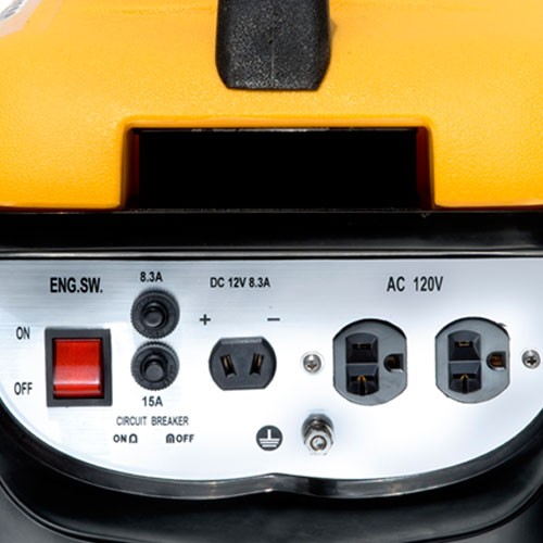 Panel: 1 contacto 120V, cargador de baterias + protección de sobrecargas.